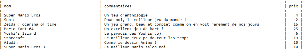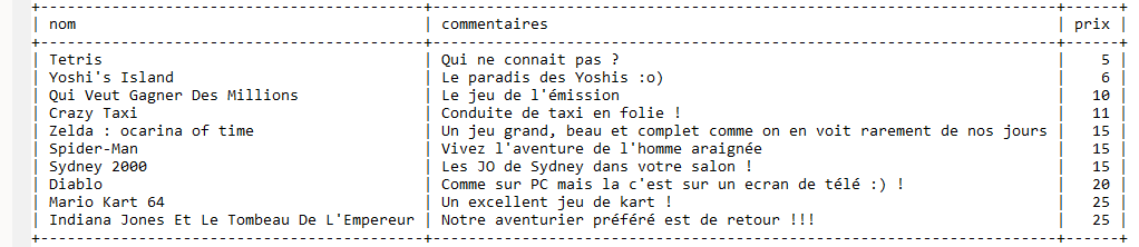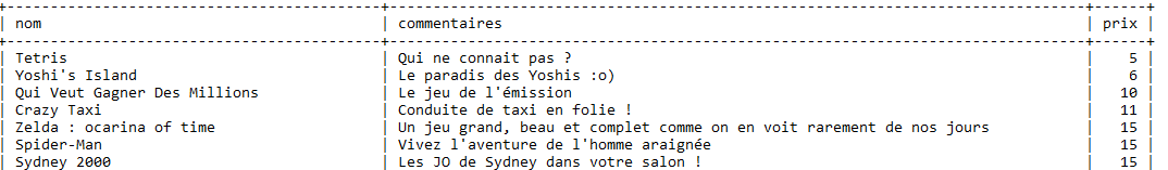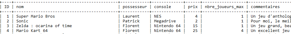 3.1 Extrait de la table "jeux_video" de la base "test" utilisée dans les exemples