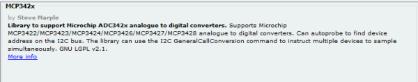 - Bibliothèques à installer dans l'IDE : MCP342x