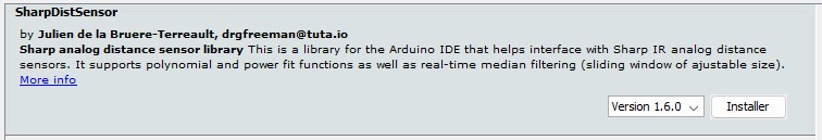 - → Fichier → Exemples → SharpDistSensor → SharpDistSensorByModel.ino