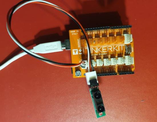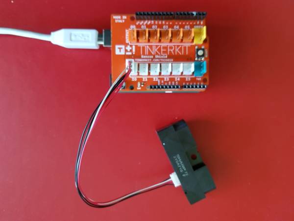 - Connexion à un shield Tinkerkit v2 monté sur une Arduino Uno.