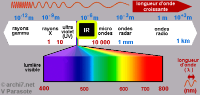 Le rayonnement infrarouge (IR) est un rayonnement électromagnétique de longueur d'onde supérieure à celle du spectre visible, mais plus courte que celle des micro-ondes ou du domaine térahertz.