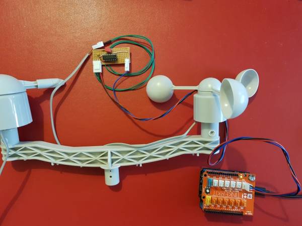 - La girouette peut donner la direction du vent sur 16 secteurs (grâce à une combinaison de résistances et 8 ILS).*
