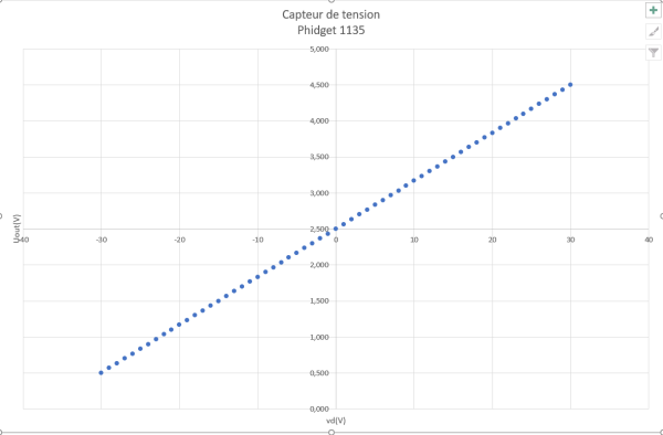 Ce capteur Phidgets mesure une tension continue entre -30 et +30 Vcc avec une meilleure précision que le module 1117. Il se raccorde sur la carte d'interface 8/8/8 1018, 1019, 1073, 1203, etc.