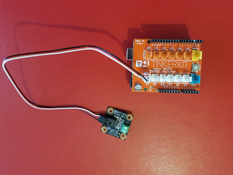 • Connexion à un shield Tinkerkit v2 monté sur une Arduino Uno.