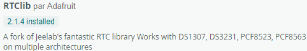 - Installation : dézipper le répertoire DS1307 à télécharger sur microbot.it, et le placer dans C:\Program Files (x86)\Arduino\libraries.