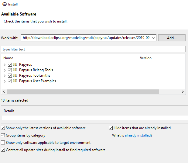 - Installer Eclipse Papyrus dans Eclipse en copiant le lien situé : ici,