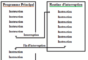 Une interruption est un arrêt temporaire de l'exécution normale d'un programme par le processeur afin d'exécuter un autre programme (appelé service d'interruption).