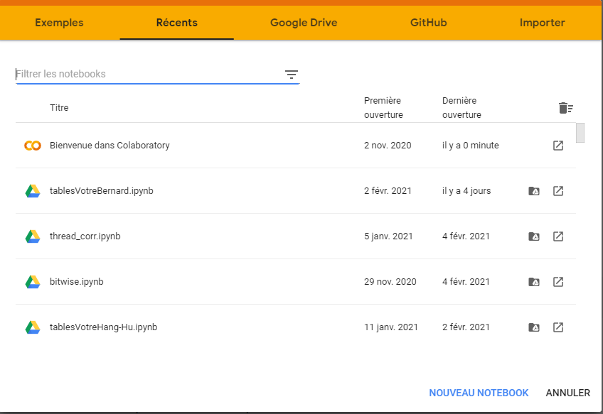 • Lancer Open in Colab en cliquant sur l'icône présente dans . La fenêtre ci-dessous s'ouvre.