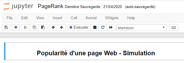 Exemple : notebook PageRank situé dans Desktop/jupyter_pagerank