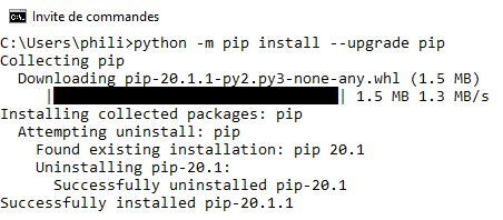 REM : Cela est nécessaire, car pour mettre à jour pip, l'ancienne version doit être