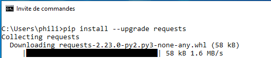 REM : mise à jour de la bibliothèque requests (utilisée pour effectuer des requêtes HTTP)