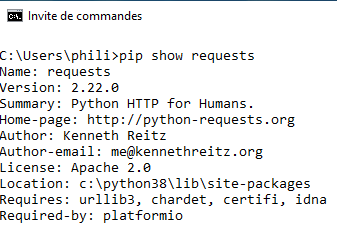 Exemple : Avant de désinstaller le paquet request ci-dessus, il faut au préalable désinstaller platformio qui en dépend.
