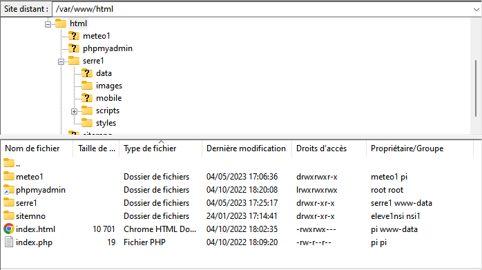 - Avec FileZilla (compte de l'utilisateur concerné), transférer le dossier sur le raspberry dans /var/www/html/.