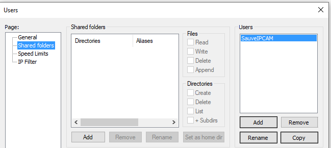 Dans ce paragraphe, vous allez configurer un serveur FTP pour qu'il sauvegarde dans un répertoire du PC les fichiers envoyés par la caméra.