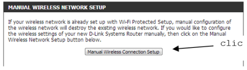 Cliquez sur “Manual Wireless Connection Setup” dans la page “Wireless Settings”.