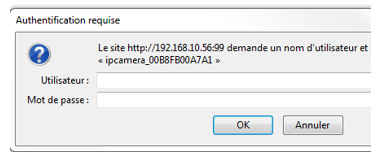 - Se connecter à la caméra avec un navigateur (@IP:port). Entrer le login et le mot de passe définis précédemment.