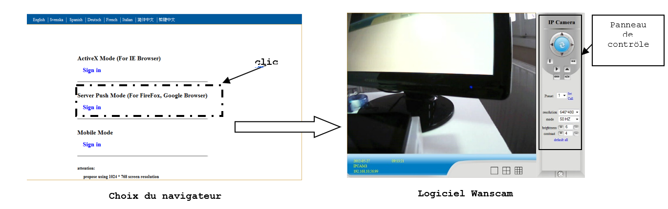 Vous allez réaliser cette mise en réseau des deux équipements (indispensable pour voir le flux vidéo dans un navigateur) en suivant les indications données dans le prochain paragraphe.