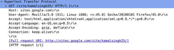 - GET est utilisée pour récupérer la représentation d’une ressource (par exemple page Web, valeur de température d’un capteur, etc.). Par exemple, la figure ci-dessous donne le format d’en-tête HTTP GET pour récupérer ma page Web :