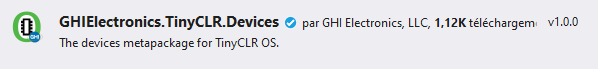 • Refaire les mêmes opérations pour installer GHIElectronics.TinyCLR.Devices