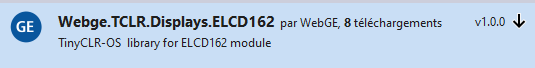 Installer les bibliothèques du projet précédent et ajouter Webge.TCLR.Displays.ELCD162.
