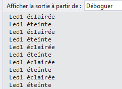 Debug.WriteLine("Led1 éteinte");