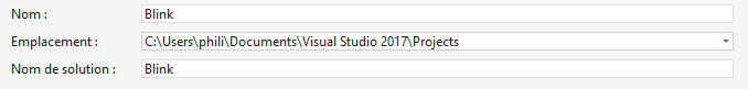 Le projet Blink est contenu dans la solution Blink. Vous allez écrire le code source du programme dans le fichier Program.cs.