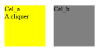 <!-- Fichier ex2.html --> <div id="cel_a">Cel_a <br> A cliquer</div> <!-- création d'un bloc cel_a à cliquer -->